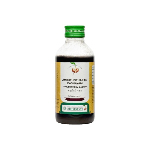 Amruthotharam Kashayam es una decocción herbal diseñada para aliviar varios tipos de fiebres. Sus ingredientes naturales trabajan juntos para reducir las fiebres de bajo grado e intermitentes, al mismo tiempo que apoyan la salud general y fortalecen la inmunidad.