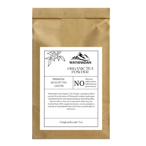 Chai Kerala en Polvo está elaborado con hojas de té de alta calidad provenientes de las verdes colinas de Wayanad, Kerala, India. El clima único y el suelo fértil de la región crean un polvo de té con un aroma intenso y un sabor robusto. Cada hoja es cuidadosamente seleccionada a mano y procesada de manera tradicional, preservando su frescura natural y su sabor profundo. Disfruta en cada taza de una mezcla suave de fuerza y delicadas notas florales. Su prolongado retrogusto lo hace ideal tanto para energizar tus mañanas como para relajarte por la tarde. Chai Kerala en Polvo es rico en antioxidantes, que ayudan a fortalecer el sistema inmunológico, mejorar la digestión y reducir el estrés. Este té premium te ofrece una experiencia refrescante y satisfactoria para cualquier ocasión.